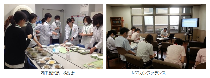 管理栄養士は病棟担当制を採用、各担当病棟ごとのカンファレンスや回診にも同行しています。また、NST、緩和、褥瘡のチーム医療の一員として専門性を発揮しています。