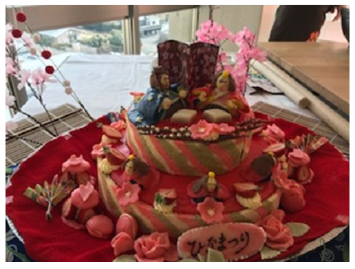 今回、ひな祭りの時期でしたのでひな人形のケーキで飾り付け。患者さんにとても好評でした。