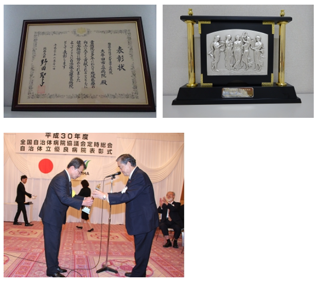 平成30年6月21日(木)に東京で開催されました「全国自治体病院協議会定時総会」において、「平成30年度自治体立優良病院総務大臣表彰」を受賞しましたことをご報告いたします。