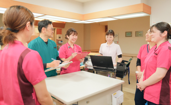 大牟田市立病院 看護部では、 患者さんに求められる 看護の提供ができるよう 基本理念や方針・今年の目標を 掲げ日々研鑽すると共に、 感性豊かな看護を提供し、 住民に愛される病院をめざします。