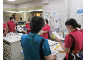 複数の科を担当しており、数十種類のクリニカルパスを用いて看護ケアの統一を図り患者満足度の向上に努めています。様々な疾患や症状の患者さんがこられるため個別性のある看護を提供出来るよう勉強会や他職種で情報共有を行っています。