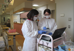腎センターでは、透析患者さんがその人らしい生活を送れるように、医師・看護師・臨床工学技士と協力し日々励んでいます。