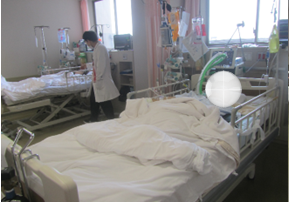 救急病棟では、ハイケアユニットとして人工呼吸器や血行動態モニターなどを用いた、高度で専門的な全身管理が行える体制を整え、重症患者さんをはじめ大手術後の集中管理が必要な患者さんの対応をしております。。看護スタッフは、呼吸療法認定士や心不全療養指導士、感染管理認定看護師などの専門資格を有する計18名で構成されています。