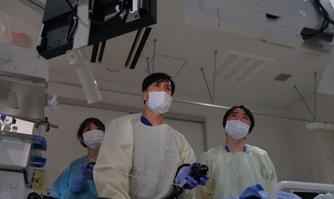 近年、消化管早期癌に対する治療、特に内視鏡的粘膜下層剥離術(ESD)に力を入れており、咽頭・食道・胃・十二指腸・大腸とあらゆる臓器で治療させていただいております。