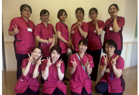”患者とともに!~つらい時こそ支え寄り添う看護~”をスローガンに、患者さんに寄り添って安心・安全な看護の提供ができるように日々頑張っています。
