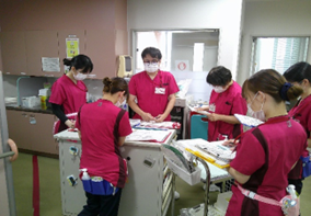 救急搬送されてくる患者さんに、適切で迅速な救急医療、救急看護を提供できるよう、部署全体で研鑽に努めていきます。