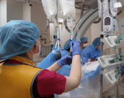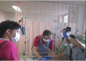 救急病棟では、ハイケアユニットとして人工呼吸器や血行動態モニターなどを用いた、高度で専門的な全身管理が行える体制を整え、重症患者さんをはじめ大手術後の集中管理が必要な患者さんの対応をしております。。看護スタッフは、呼吸療法認定士や心不全療養指導士、感染管理認定看護師などの専門資格を有する計18名で構成されています。